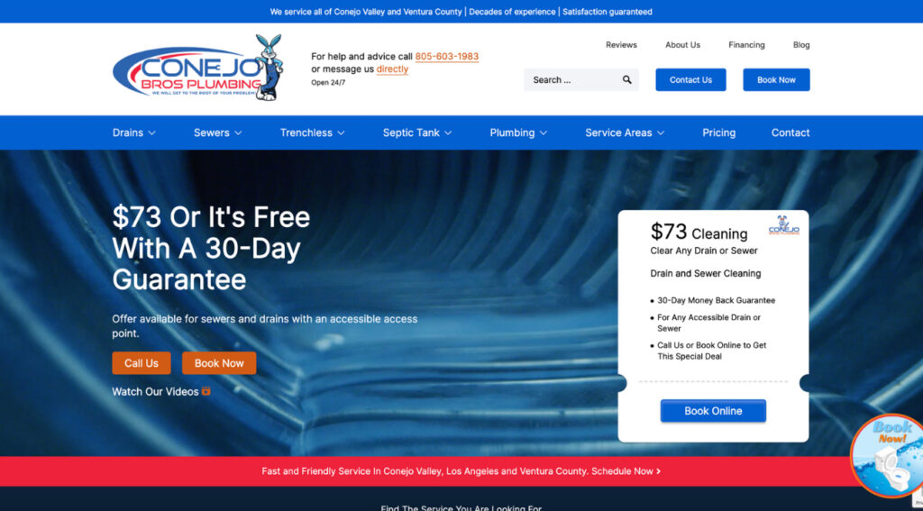We designed a custom website for Conejo Bros Plumbing Services to help them expand into new Southern California markets. The site was built to support strong SEO, clear service offerings, and a trustworthy user experience that drives conversions.