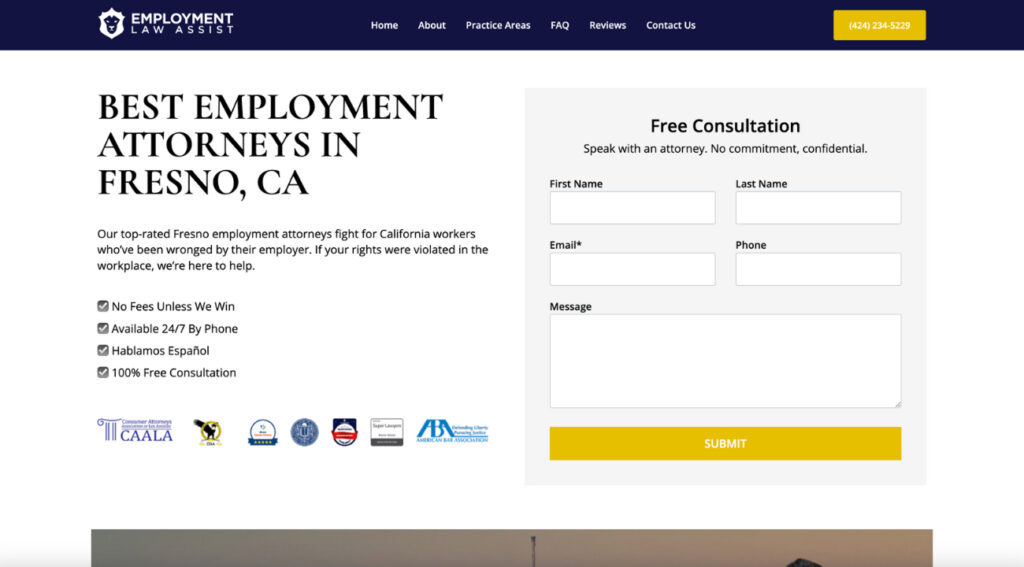 We designed a series of landing pages for a California-based employment law firm, tailored for Google Ads campaigns. The pages were optimized for conversions, fast-loading, and focused on individual legal issues and service areas across the state.